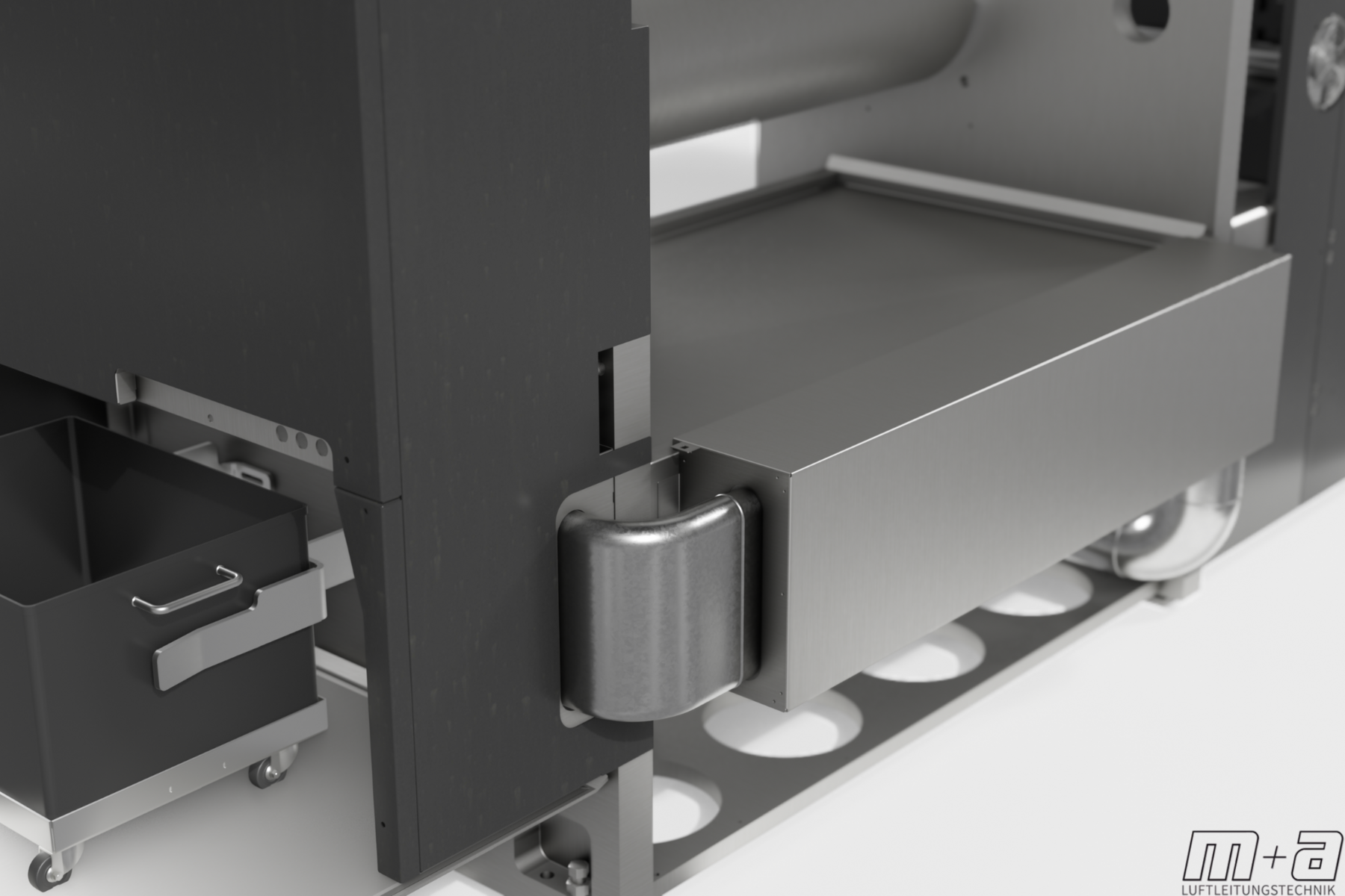 Die Ovalrohre übernehmen zunehmend eine Doppelfunktion: Neben der Luftführung dienen sie als strukturintegrierte Kabelkanäle. Besonders in der neuesten Maschinen-Generation (z. B. MetalCoat 471 & MetalCoat 484) sind unsere Ovalrohre im seitlichen Bereich der Maschine im Gehäuse integriert. Ein Konzept, das sowohl den Platzbedarf reduziert als auch die Wartungsfreundlichkeit und Sicherheit erhöht.